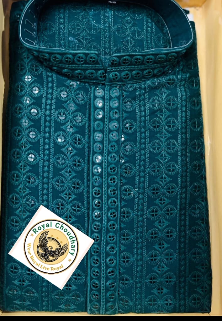 The fabric has a soft, breathable quality typical of cotton, but with a bit of structure that makes it suitable for more formal or structured clothing.